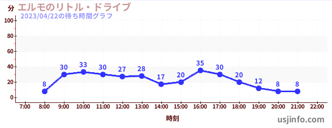 • エルモのリトル・ドライブ$B$N(B2023年04月22日の待ち時間