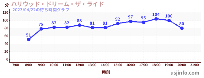 • ハリウッド・ドリーム・ザ・ライド$B$N(B2023年04月22日の待ち時間