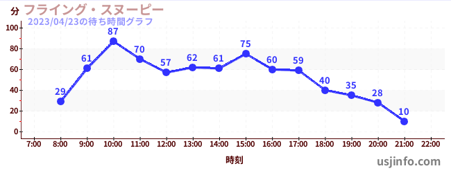 • フライング・スヌーピー$B$N(B2023年04月23日の待ち時間