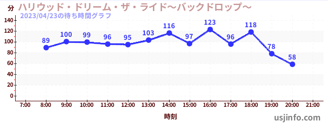 • ハリウッド・ドリーム・ザ・ライド〜バックドロップ〜$B$N(B2023年04月23日の待ち時間