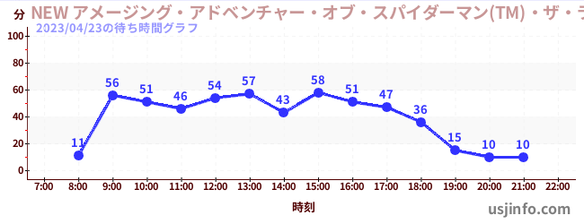 • NEW アメージング・アドベンチャー・オブ・スパイダーマン(TM)・ザ・ライド 4K3D$B$N(B2023年04月23日の待ち時間
