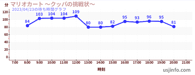 • マリオカート ~クッパの挑戦状~$B$N(B2023年04月23日の待ち時間