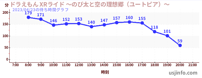 • ドラえもん XRライド ~のび太と空の理想郷(ユートピア)~$B$N(B2023年04月23日の待ち時間