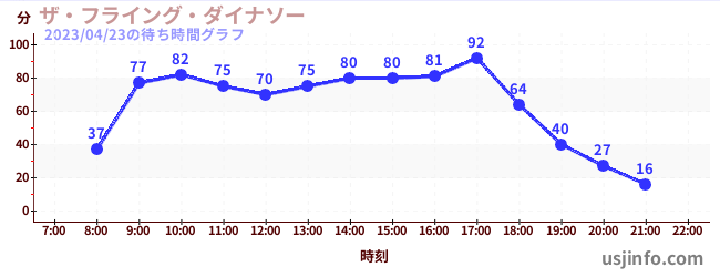 • ザ・フライング・ダイナソー$B$N(B2023年04月23日の待ち時間