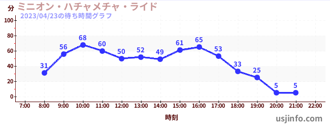 • ミニオン・ハチャメチャ・ライド$B$N(B2023年04月23日の待ち時間