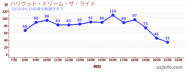 • ハリウッド・ドリーム・ザ・ライド$B$N(B2023年04月23日の待ち時間