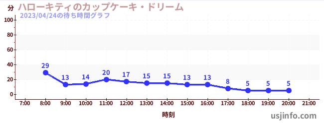 • ハローキティのカップケーキ・ドリーム$B$N(B2023年04月24日の待ち時間