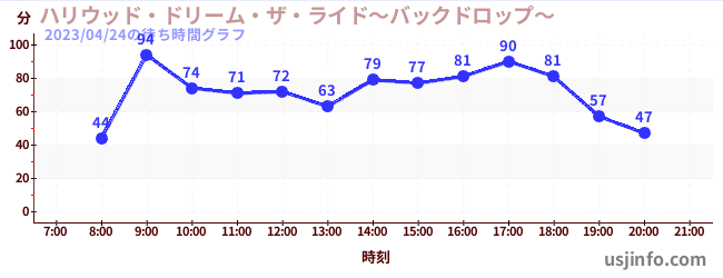 • ハリウッド・ドリーム・ザ・ライド〜バックドロップ〜$B$N(B2023年04月24日の待ち時間