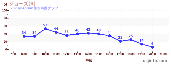 • ジョーズ(R)$B$N(B2023年04月24日の待ち時間