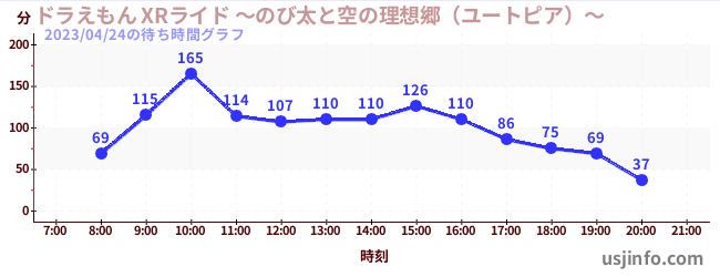 • ドラえもん XRライド ~のび太と空の理想郷(ユートピア)~$B$N(B2023年04月24日の待ち時間