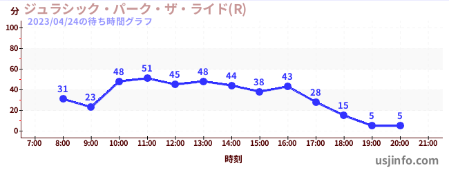 • ジュラシック・パーク・ザ・ライド(R)$B$N(B2023年04月24日の待ち時間