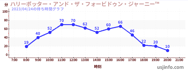 • ハリーポッター・アンド・ザ・フォービドゥン・ジャーニー™$B$N(B2023年04月24日の待ち時間