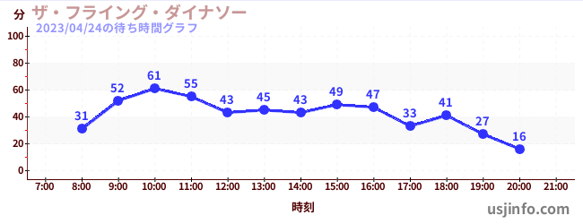 • ザ・フライング・ダイナソー$B$N(B2023年04月24日の待ち時間