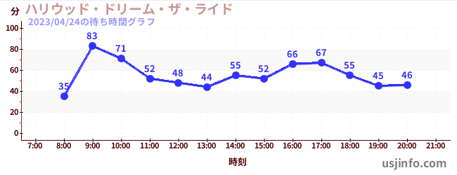 • ハリウッド・ドリーム・ザ・ライド$B$N(B2023年04月24日の待ち時間