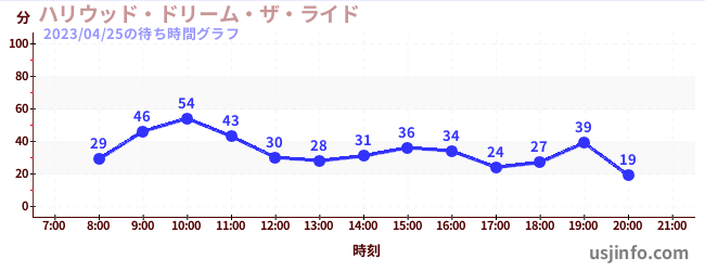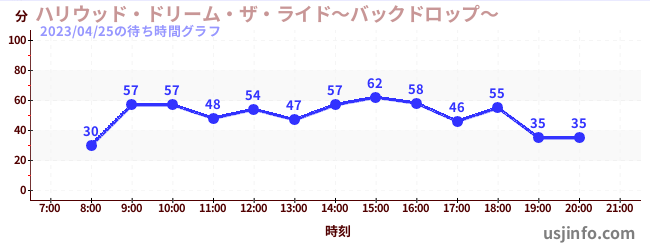 • ハリウッド・ドリーム・ザ・ライド$B$N(B2023年04月25日の待ち時間