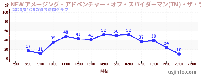 • NEW アメージング・アドベンチャー・オブ・スパイダーマン(TM)・ザ・ライド 4K3D$B$N(B2023年04月25日の待ち時間