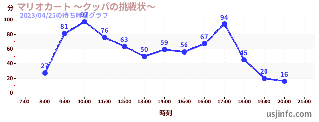 • マリオカート ~クッパの挑戦状~$B$N(B2023年04月25日の待ち時間
