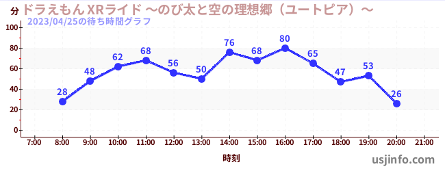 • ドラえもん XRライド ~のび太と空の理想郷(ユートピア)~$B$N(B2023年04月25日の待ち時間