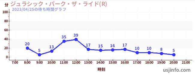 • ジュラシック・パーク・ザ・ライド(R)$B$N(B2023年04月25日の待ち時間