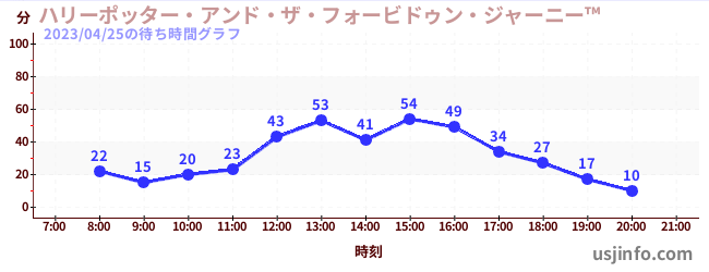 • ハリーポッター・アンド・ザ・フォービドゥン・ジャーニー™$B$N(B2023年04月25日の待ち時間
