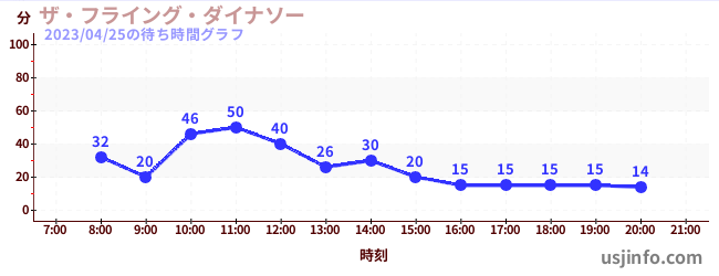 • ザ・フライング・ダイナソー$B$N(B2023年04月25日の待ち時間