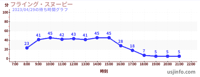 • フライング・スヌーピー$B$N(B2023年04月29日の待ち時間