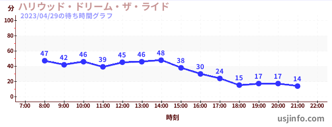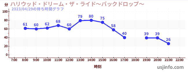 • ハリウッド・ドリーム・ザ・ライド$B$N(B2023年04月29日の待ち時間