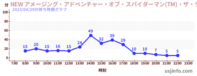 • NEW アメージング・アドベンチャー・オブ・スパイダーマン(TM)・ザ・ライド 4K3D$B$N(B2023年04月29日の待ち時間