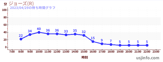 • ジョーズ(R)$B$N(B2023年04月29日の待ち時間