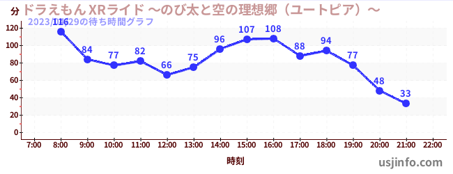 • ドラえもん XRライド ~のび太と空の理想郷(ユートピア)~$B$N(B2023年04月29日の待ち時間