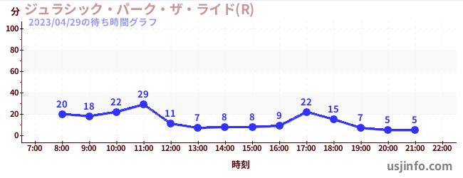 • ジュラシック・パーク・ザ・ライド(R)$B$N(B2023年04月29日の待ち時間