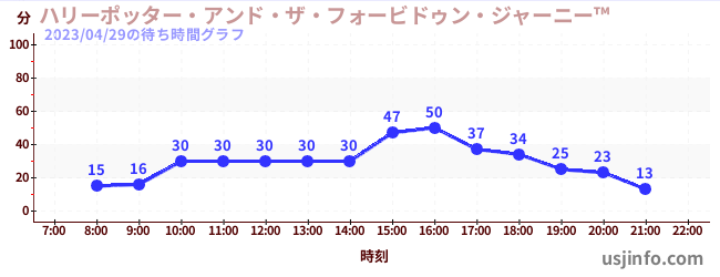 • ハリーポッター・アンド・ザ・フォービドゥン・ジャーニー™$B$N(B2023年04月29日の待ち時間
