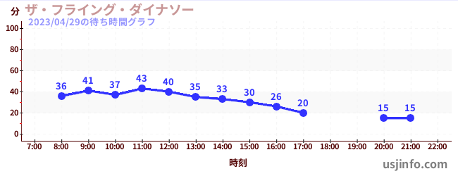 • ザ・フライング・ダイナソー$B$N(B2023年04月29日の待ち時間