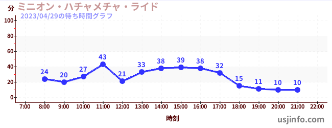 • ミニオン・ハチャメチャ・ライド$B$N(B2023年04月29日の待ち時間