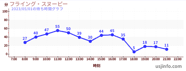 • フライング・スヌーピー$B$N(B2023年05月01日の待ち時間