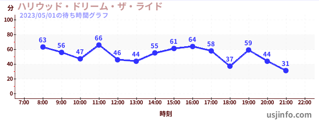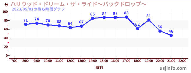 • ハリウッド・ドリーム・ザ・ライド〜バックドロップ〜$B$N(B2023年05月01日の待ち時間