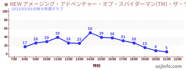 • NEW アメージング・アドベンチャー・オブ・スパイダーマン(TM)・ザ・ライド 4K3D$B$N(B2023年05月01日の待ち時間