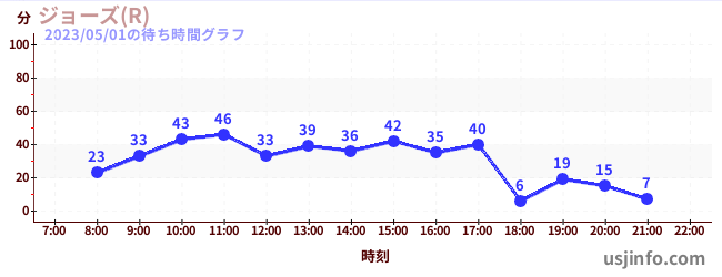 • ジョーズ(R)$B$N(B2023年05月01日の待ち時間
