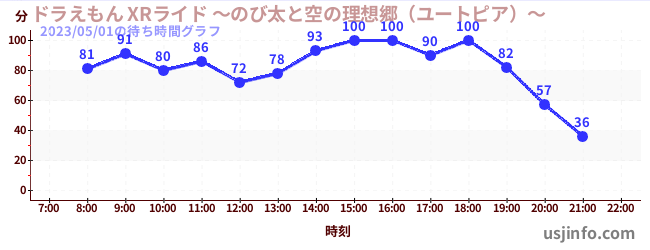 • ドラえもん XRライド ~のび太と空の理想郷(ユートピア)~$B$N(B2023年05月01日の待ち時間