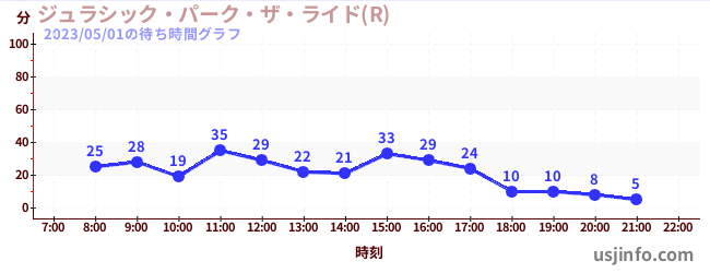 • ジュラシック・パーク・ザ・ライド(R)$B$N(B2023年05月01日の待ち時間