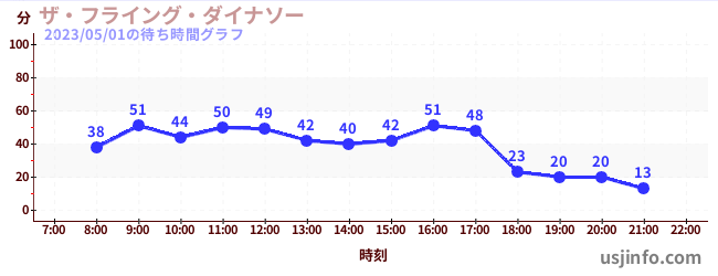 • ザ・フライング・ダイナソー$B$N(B2023年05月01日の待ち時間
