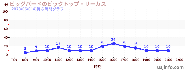 • ビッグバードのビックトップ・サーカス$B$N(B2023年05月01日の待ち時間