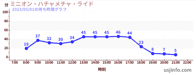 • ミニオン・ハチャメチャ・ライド$B$N(B2023年05月01日の待ち時間