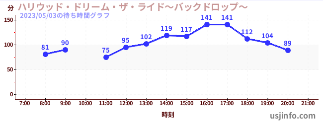 • ハリウッド・ドリーム・ザ・ライド〜バックドロップ〜$B$N(B2023年05月03日の待ち時間