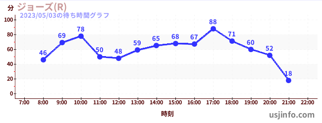 • ジョーズ(R)$B$N(B2023年05月03日の待ち時間
