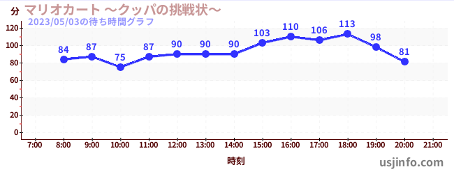 • マリオカート ~クッパの挑戦状~$B$N(B2023年05月03日の待ち時間