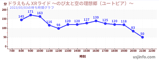 • ドラえもん XRライド ~のび太と空の理想郷(ユートピア)~$B$N(B2023年05月03日の待ち時間