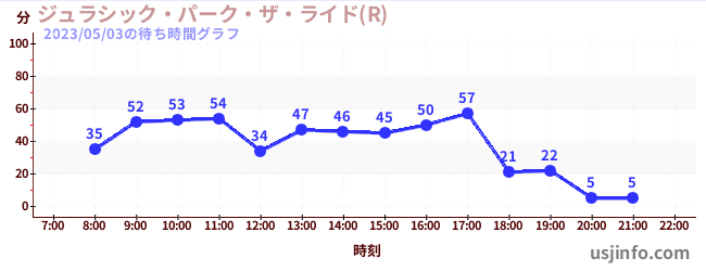 • ジュラシック・パーク・ザ・ライド(R)$B$N(B2023年05月03日の待ち時間