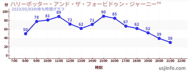 • ハリーポッター・アンド・ザ・フォービドゥン・ジャーニー™$B$N(B2023年05月03日の待ち時間