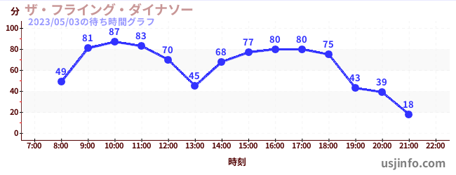 • ザ・フライング・ダイナソー$B$N(B2023年05月03日の待ち時間